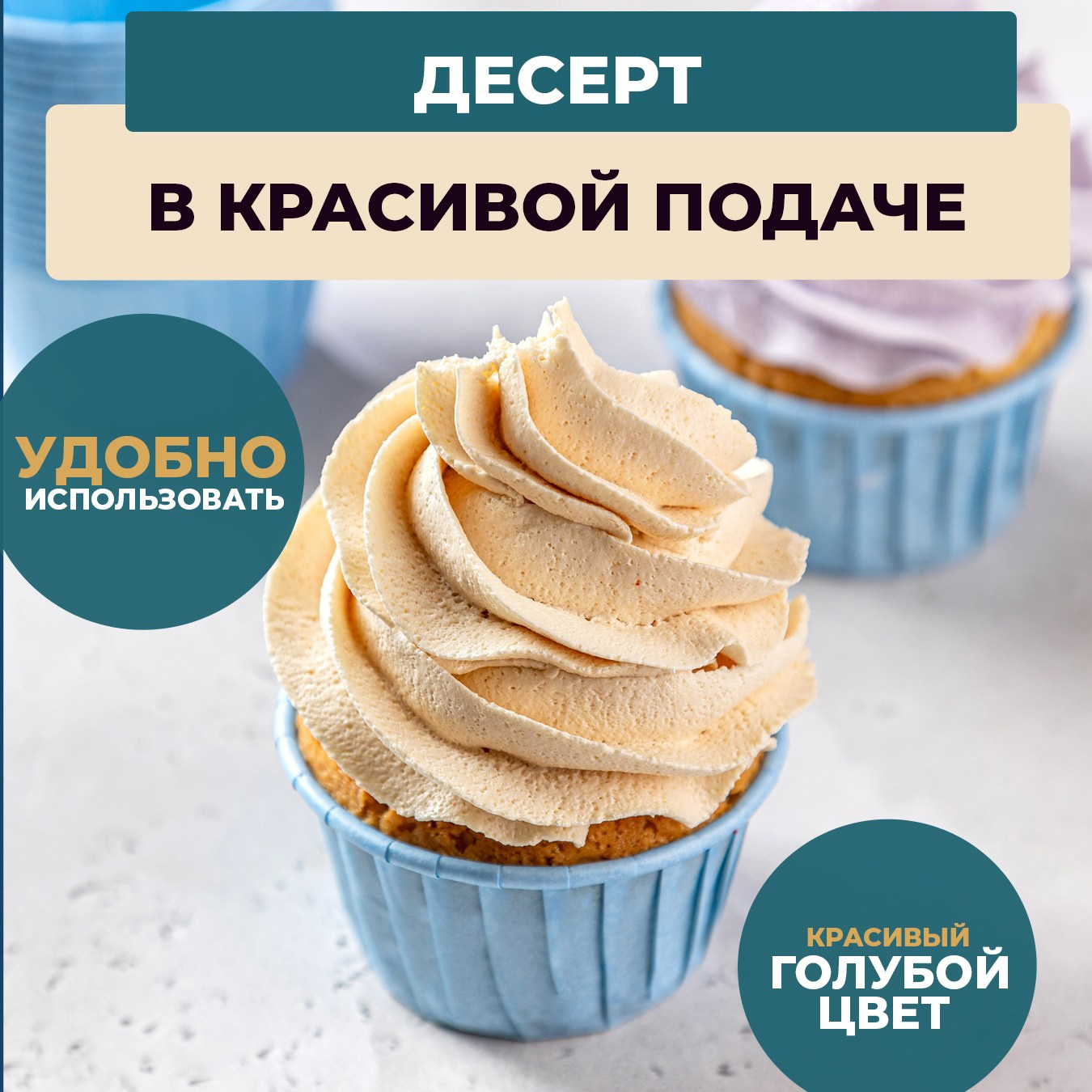 Голубые формы для выпечки кексов, маффинов