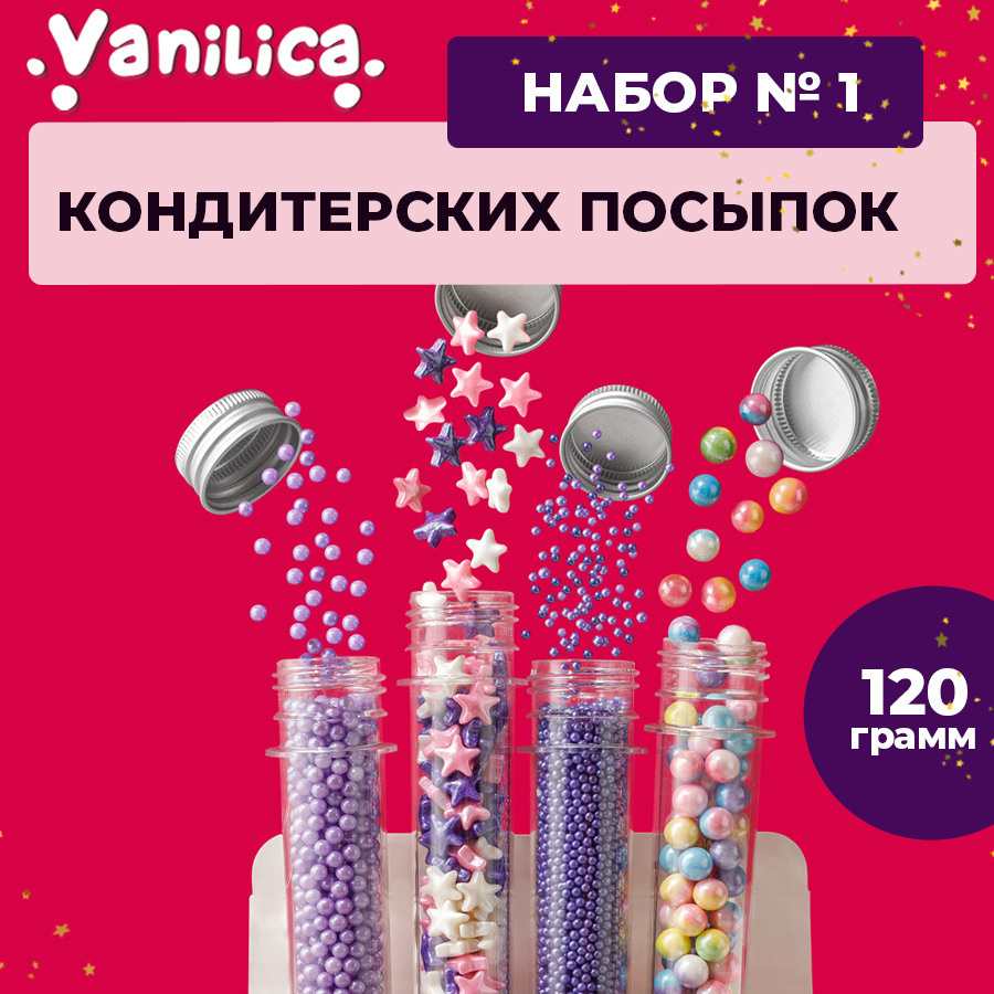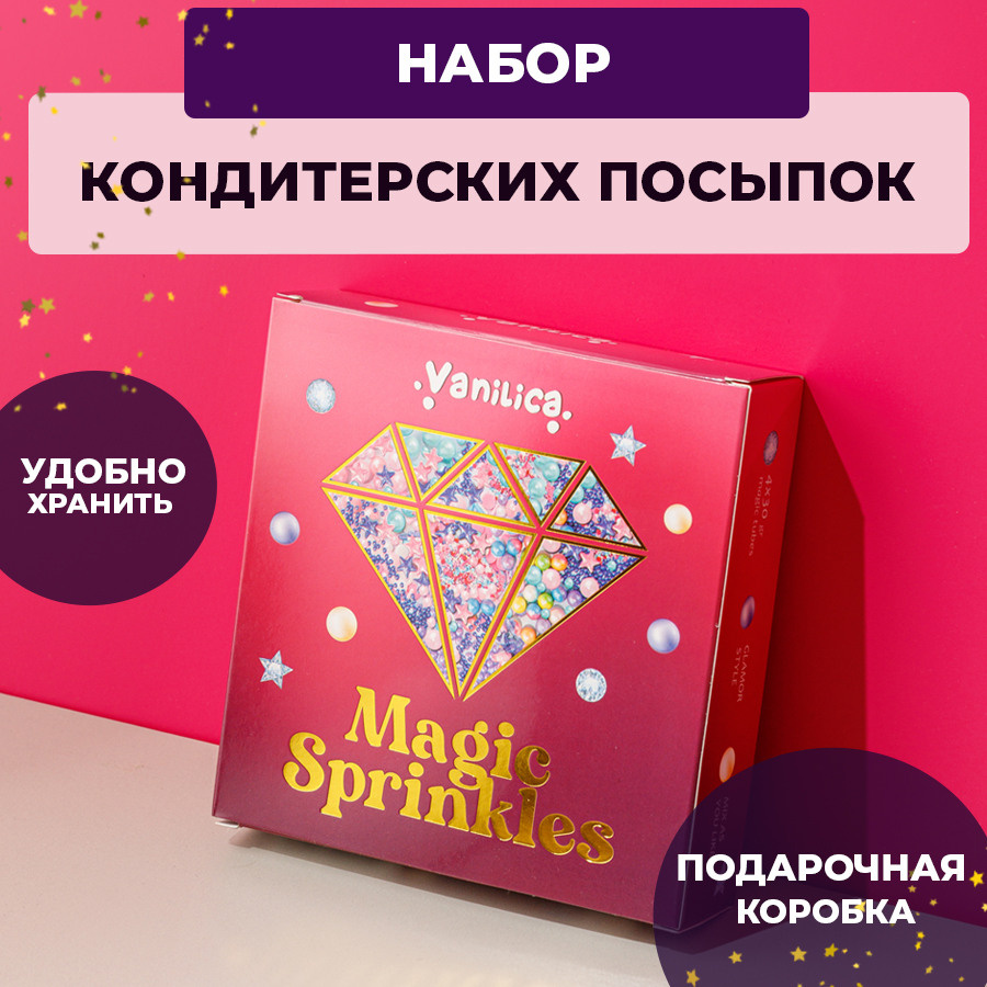 Все посыпки в наборе гармонично подобраны по цветам и форме, что позволяет дополнительно собрать свой микс.