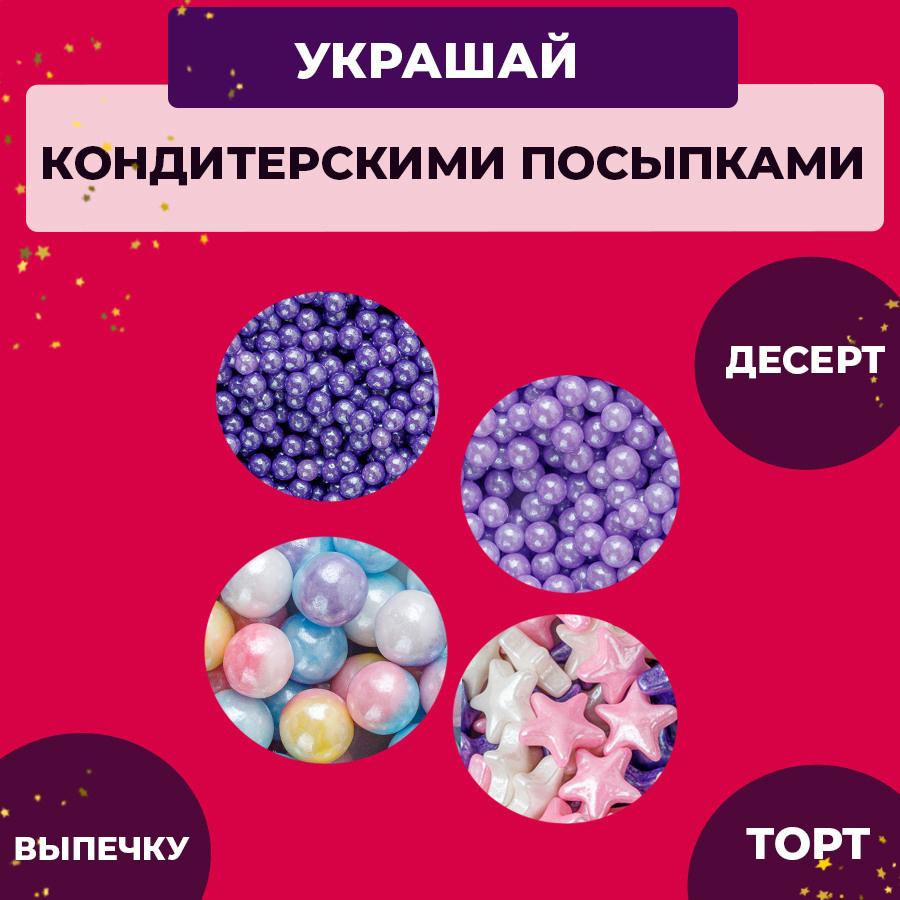 Посыпки съедобные, подойдут для украшения выпечки, тортов, пирожных, куличей.