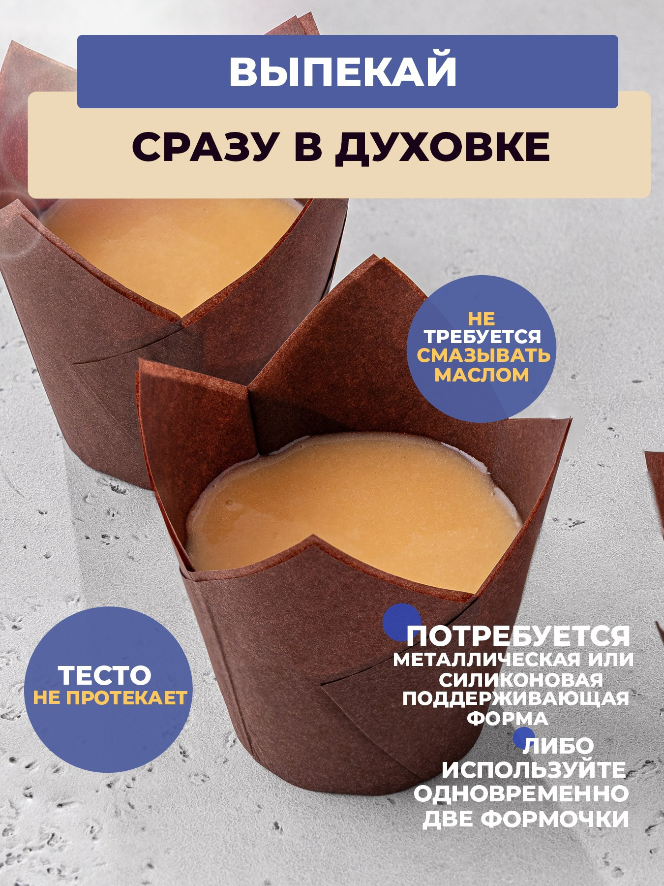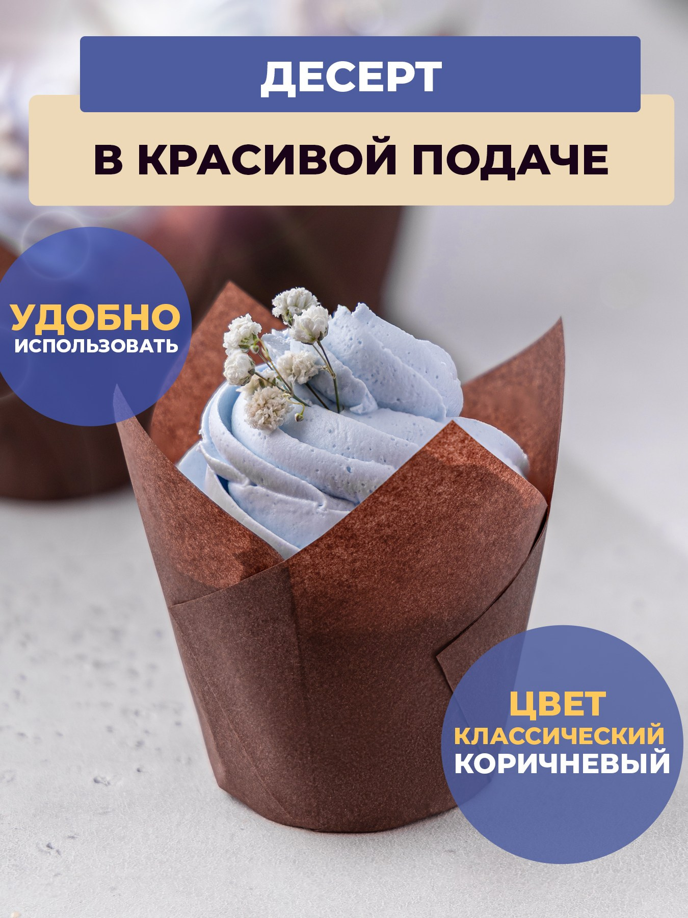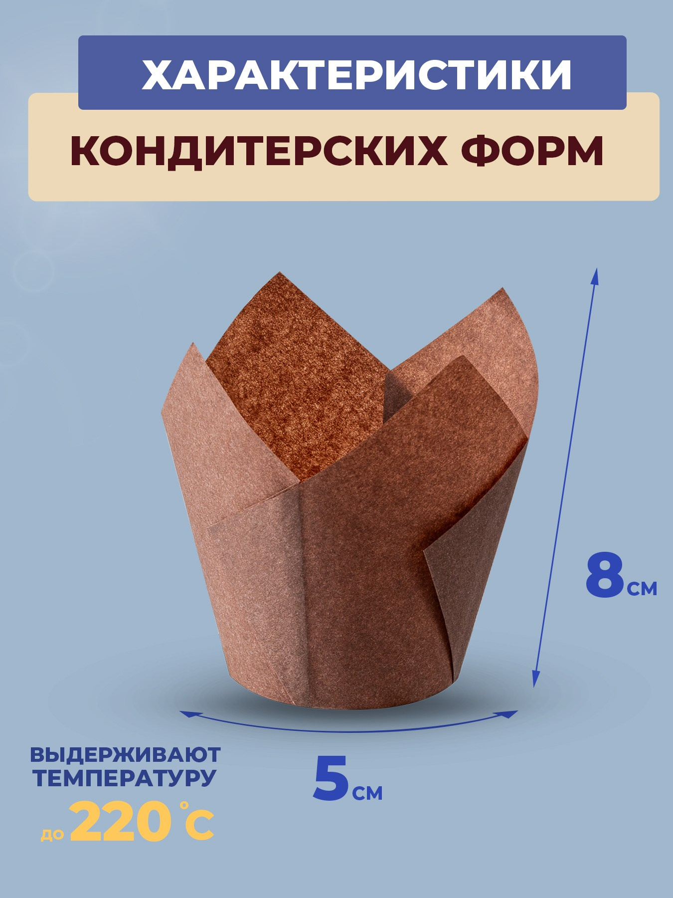 Коричневые бумажные формы «Тюльпаны» для выпечки кексов, маффинов
