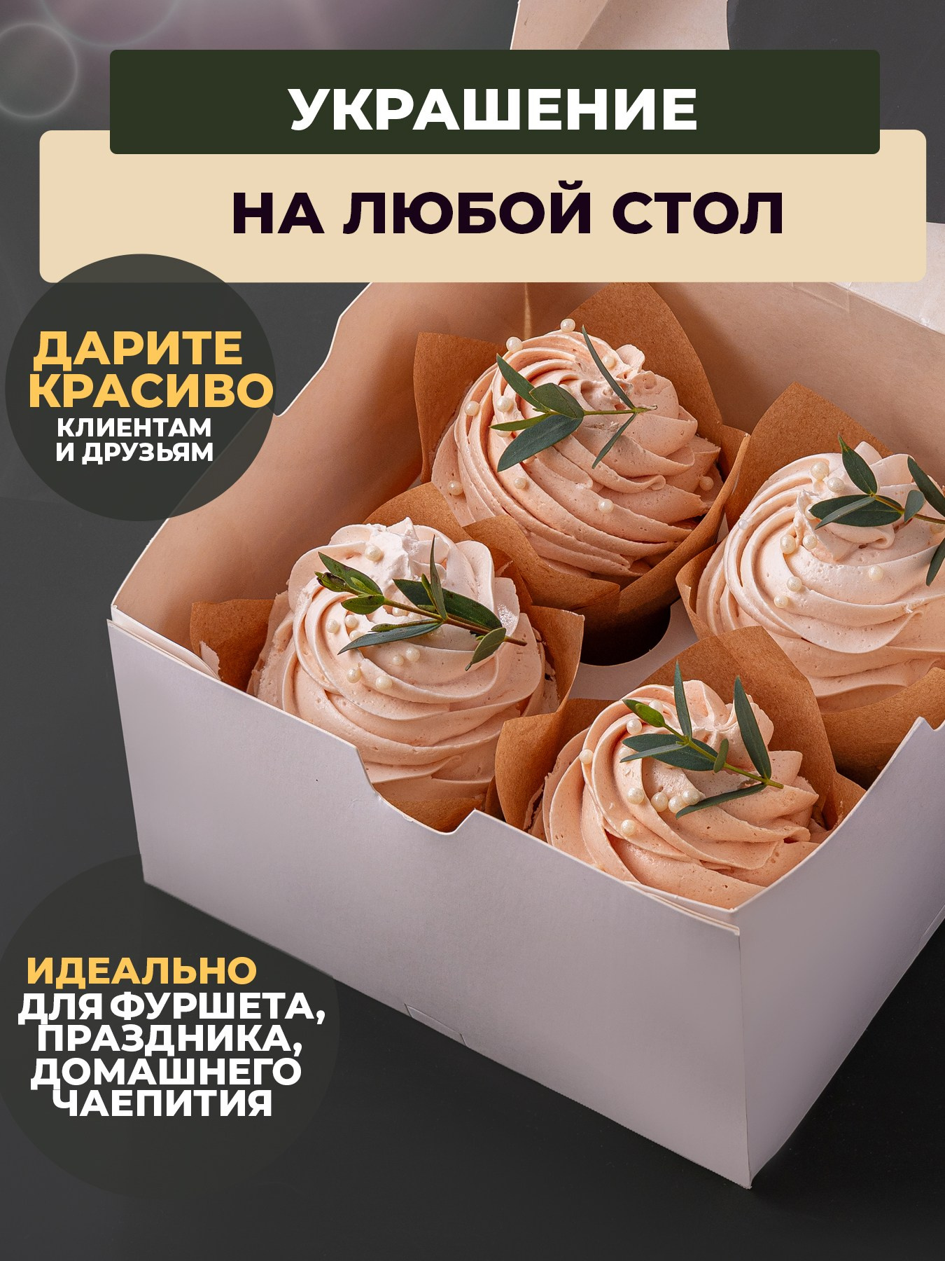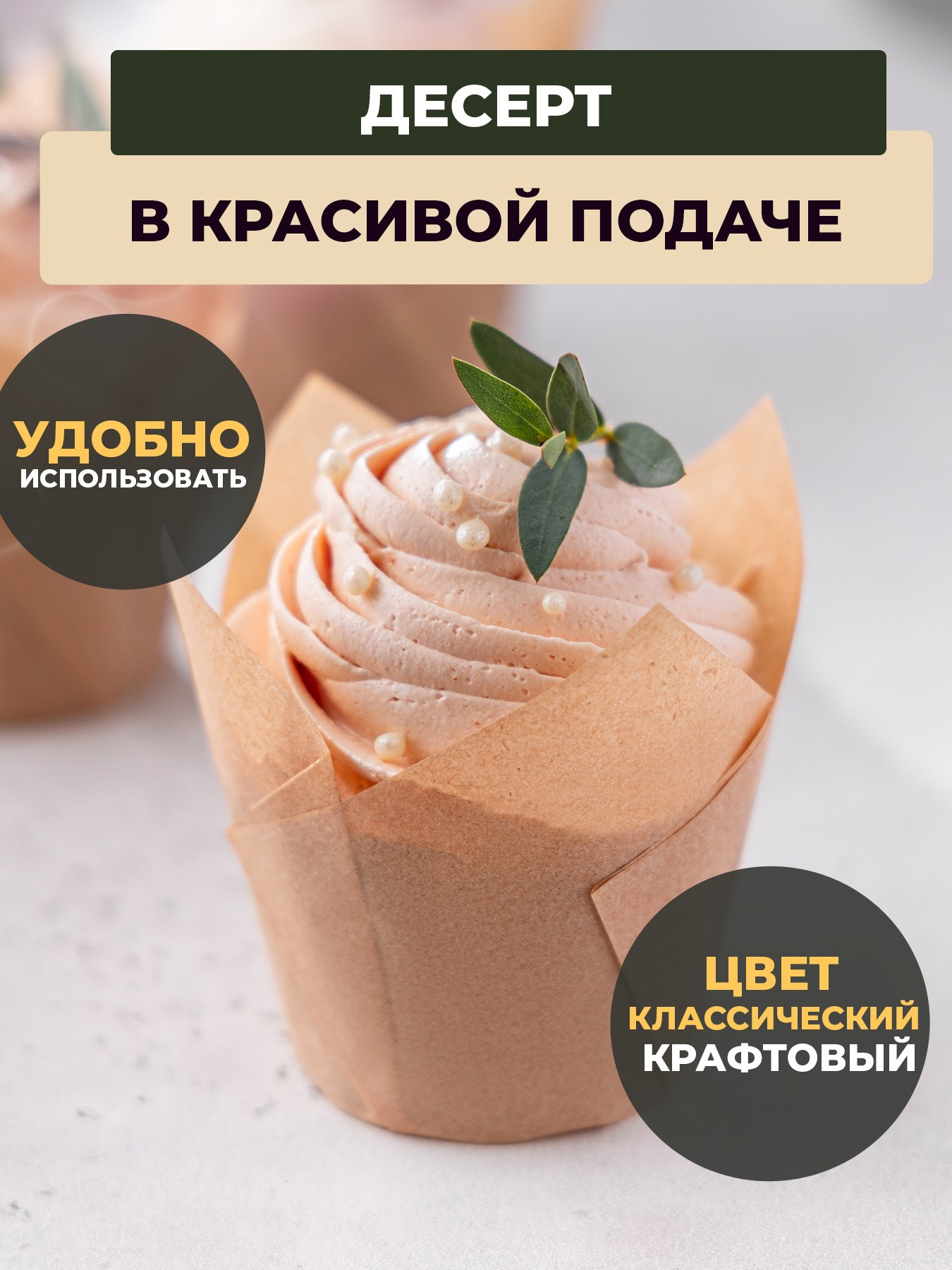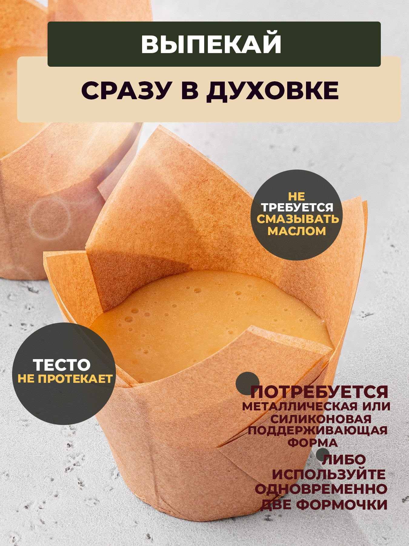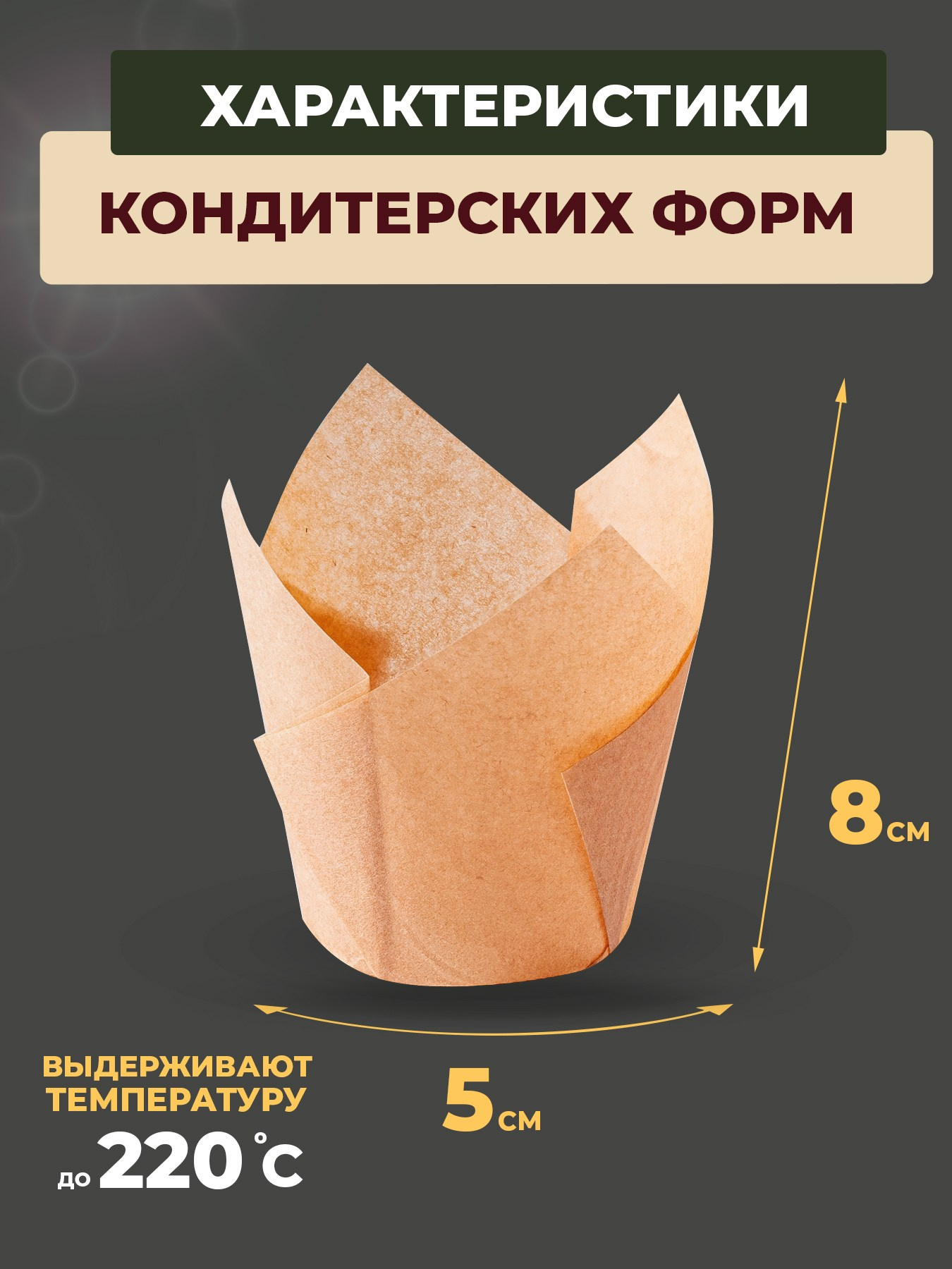 Крафтовые бумажные формы «Тюльпаны» для выпечки кексов, маффинов