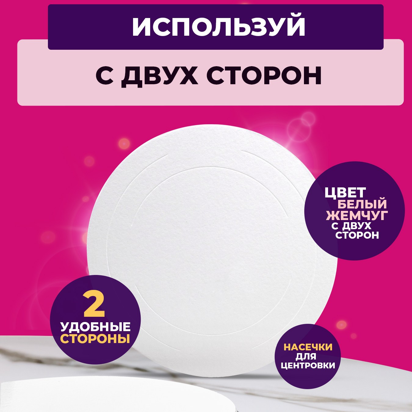 Набор подложек для тортов из очень плотного картона. В наборе 7 шт усиленных, двусторонних подложек, цвет — жемчужно-белый с каждой стороны.