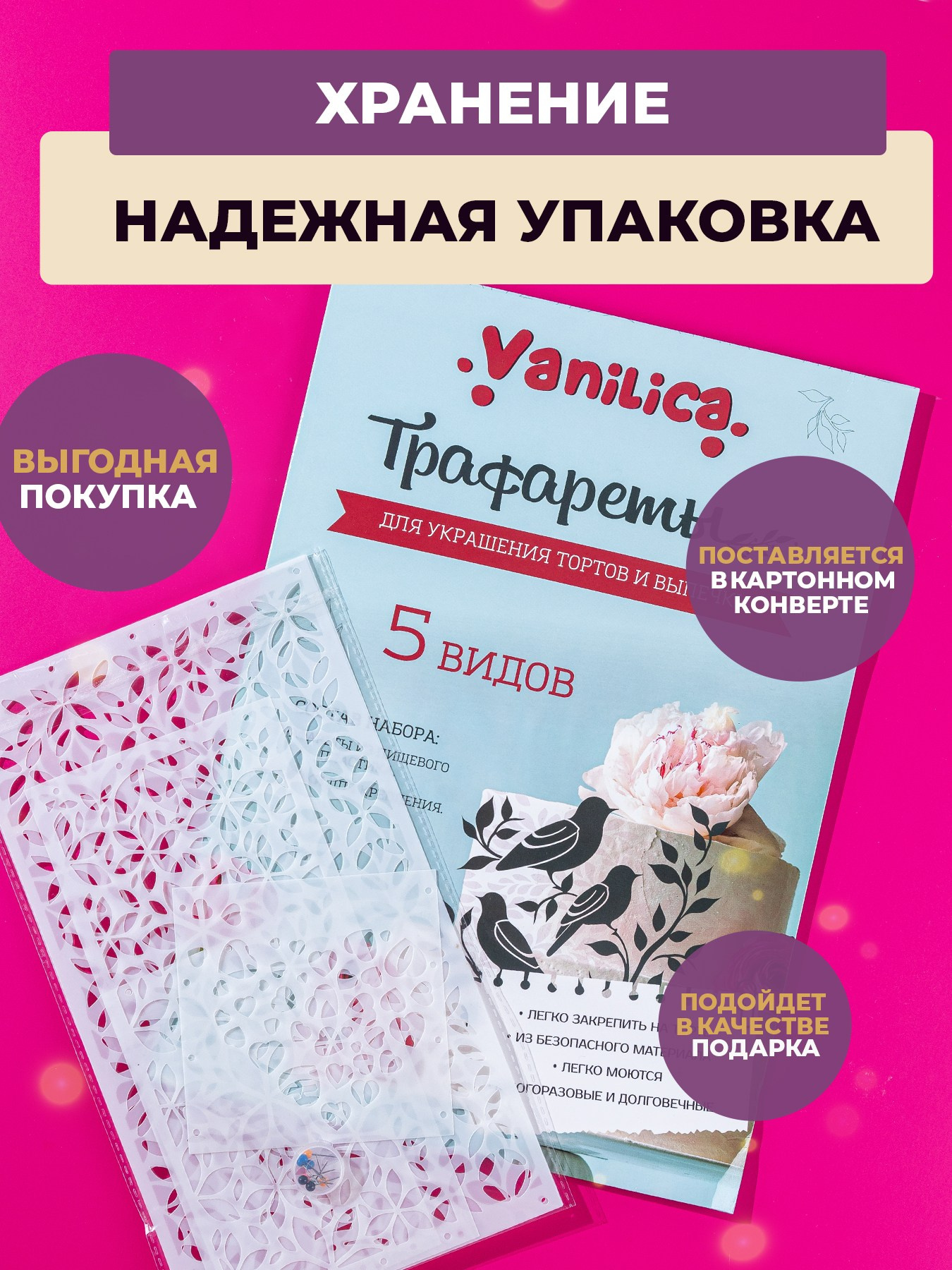 Набор кондитерских трафаретов VANILICA для украшения готового изделия уникальным рисунком, работать с ними легко и удобно, даже не обладая специальными навыками.
