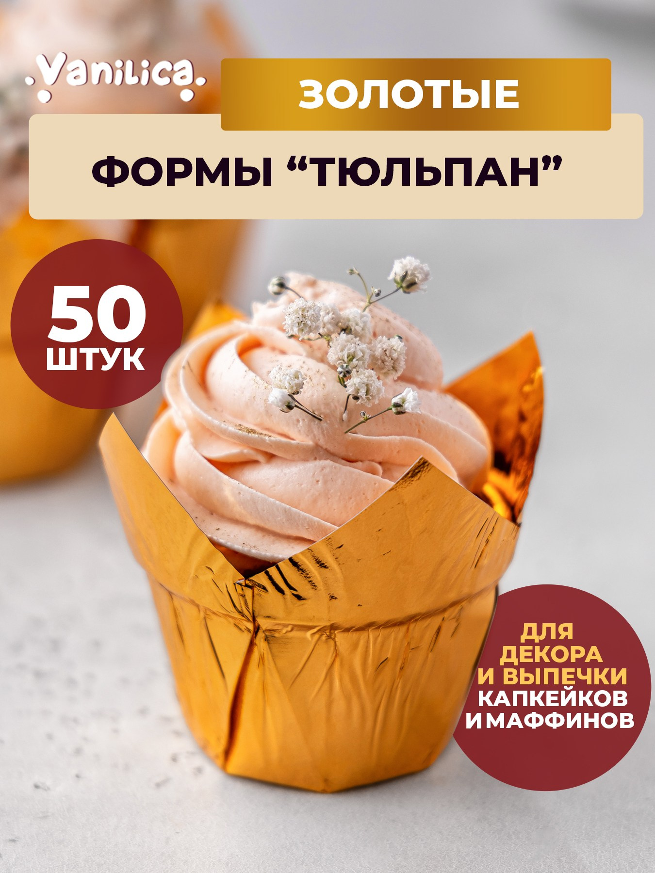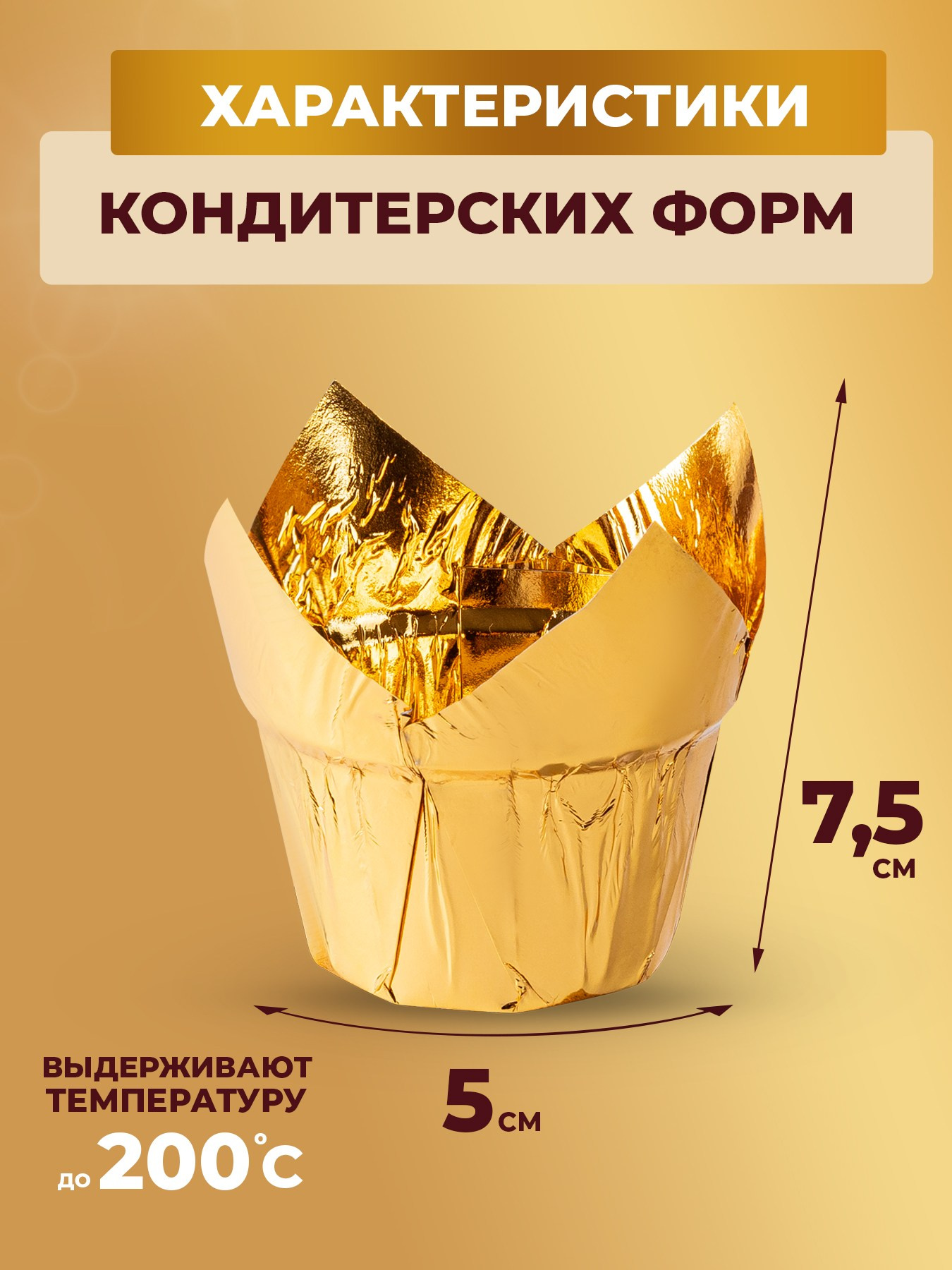 Золотые алюминиевые формы «Тюльпаны» для выпечки кексов, маффинов