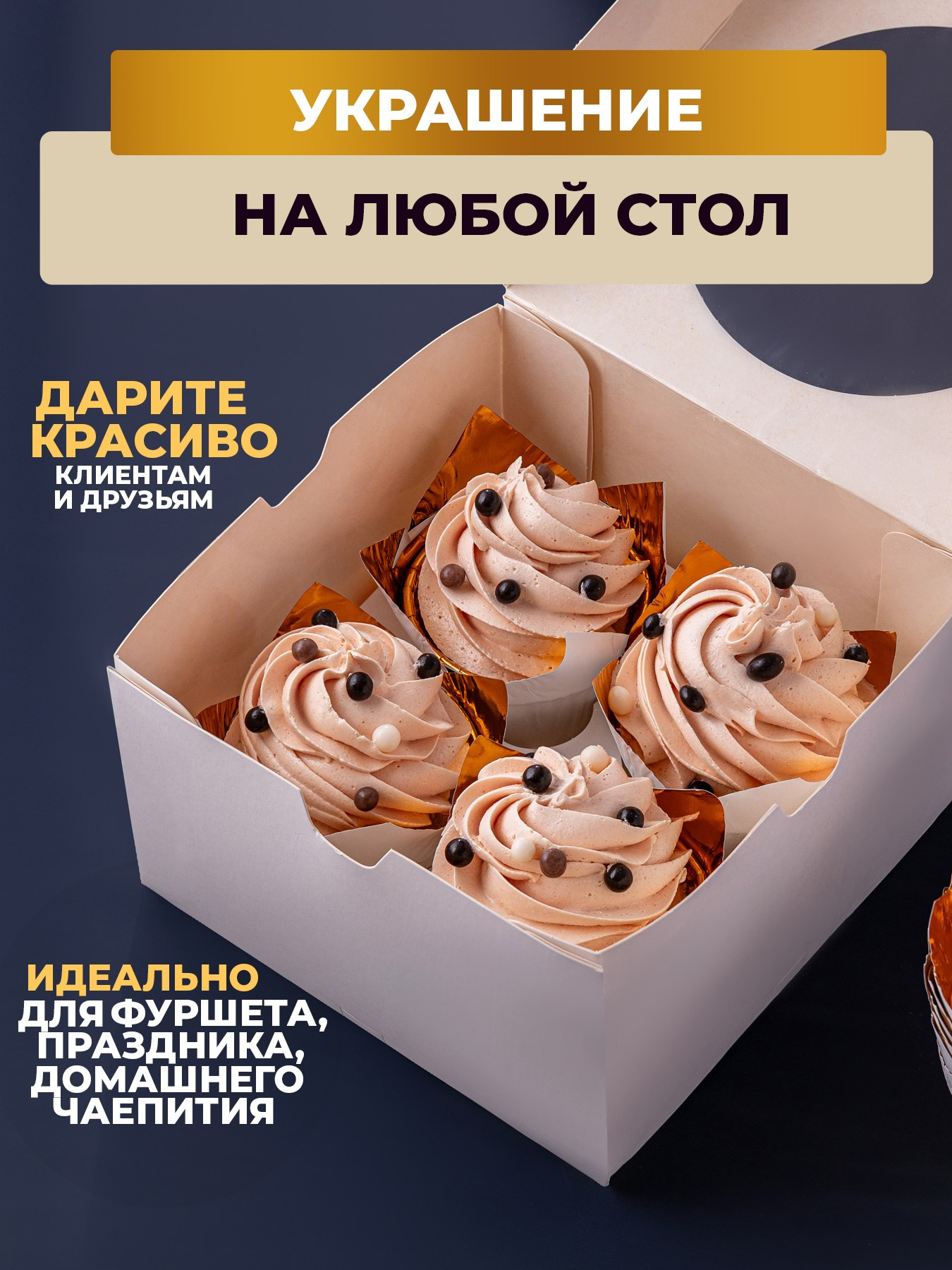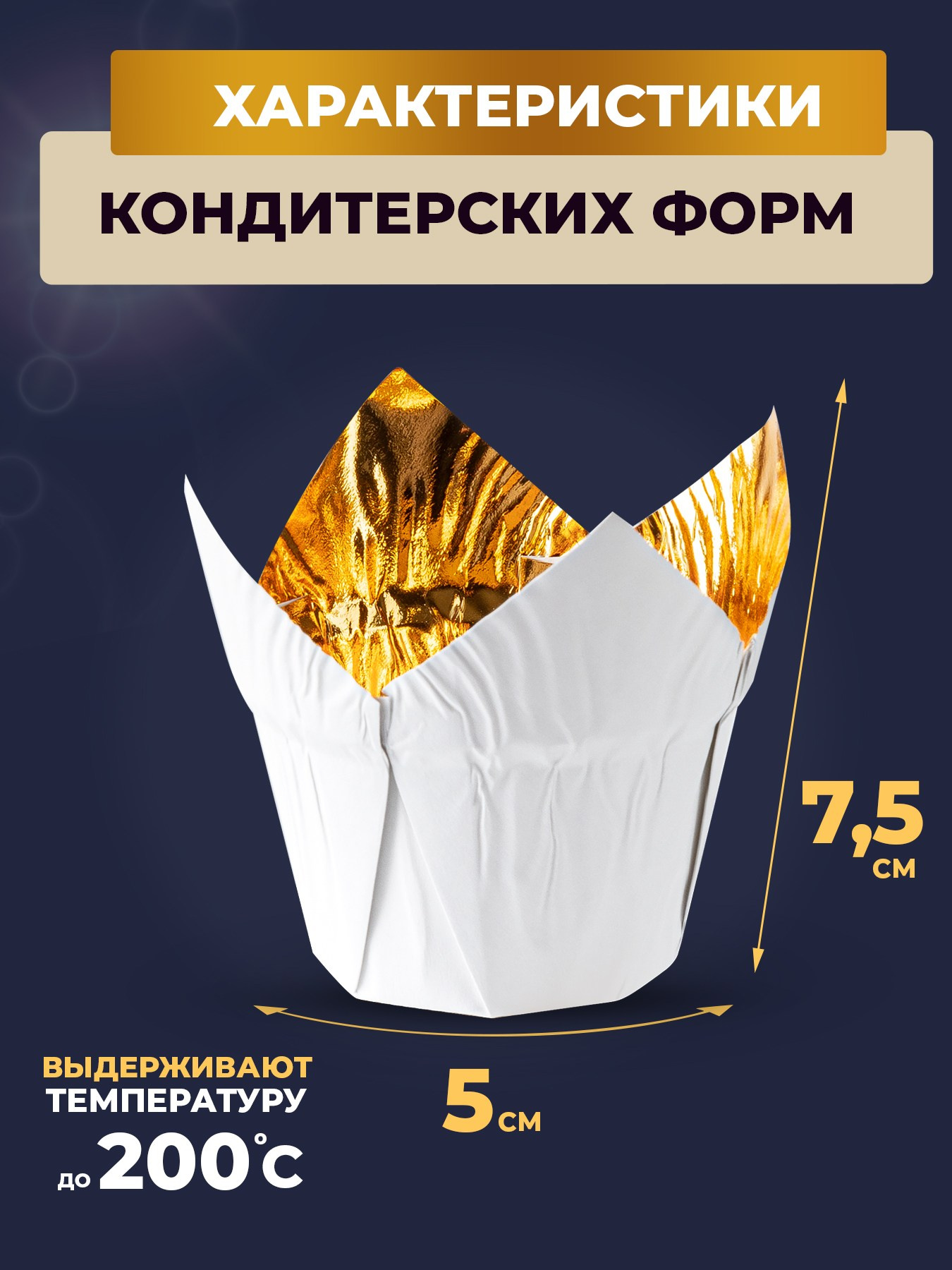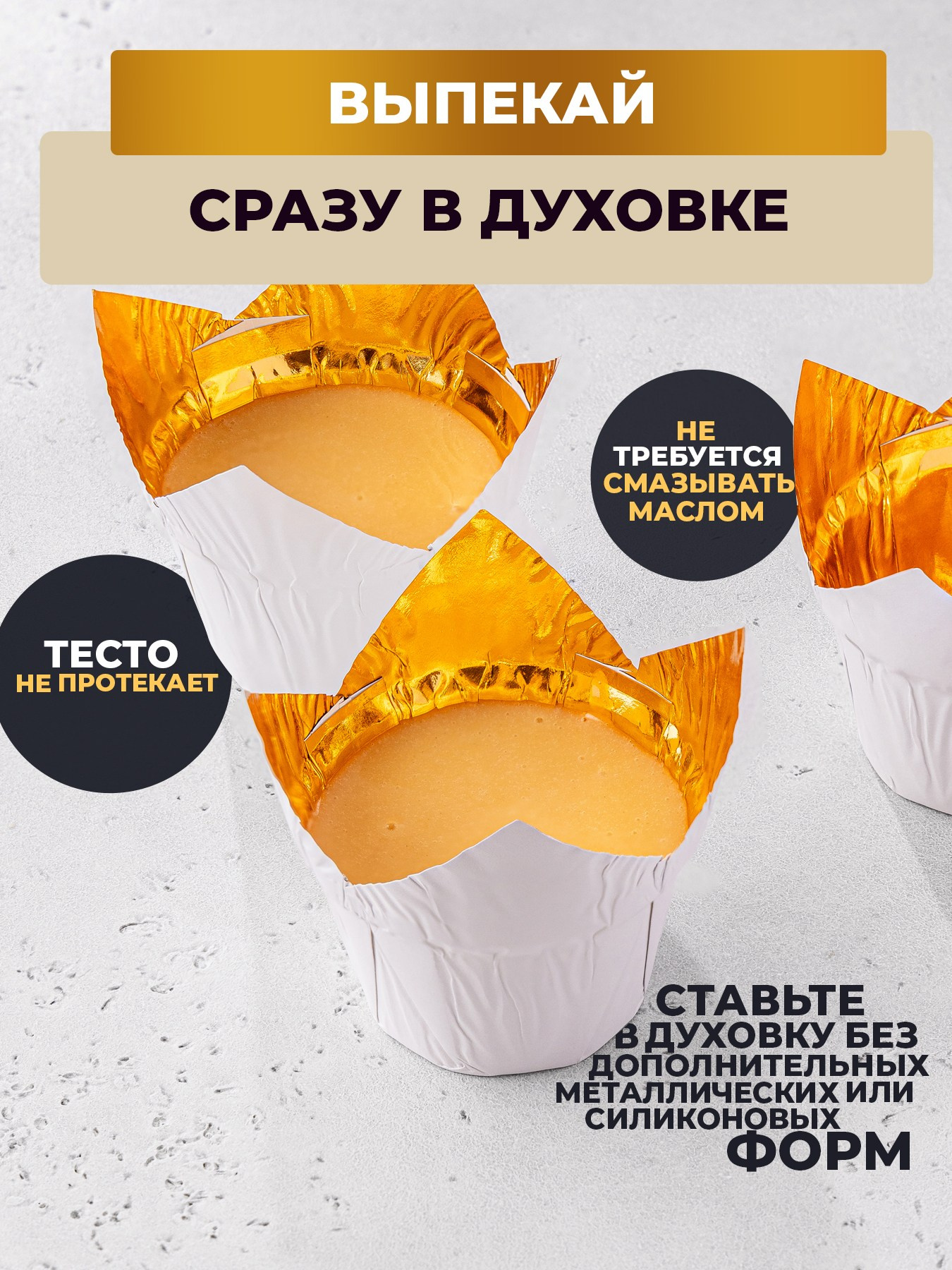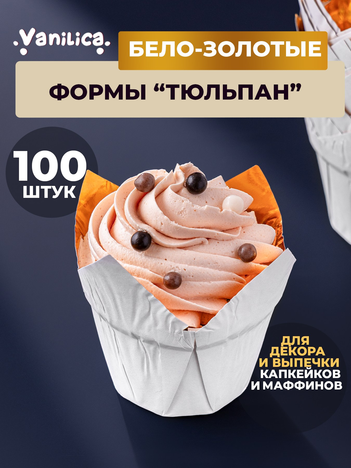 Бело-золотые алюминиевые формы «Тюльпаны» для выпечки кексов, маффинов